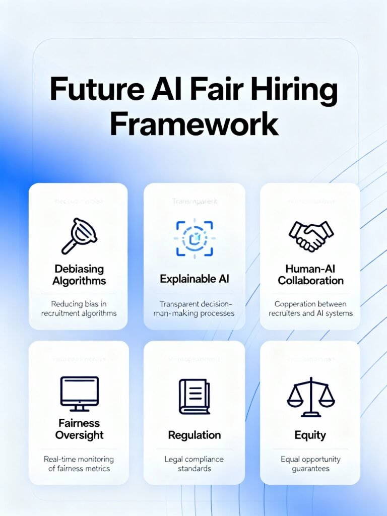 Future research focuses on fairness aware machine learning and real time bias detection. Explainable AI will play a key role in building trust and regulatory compliance. Rather than full automation hybrid human AI decision making is likely to dominate.