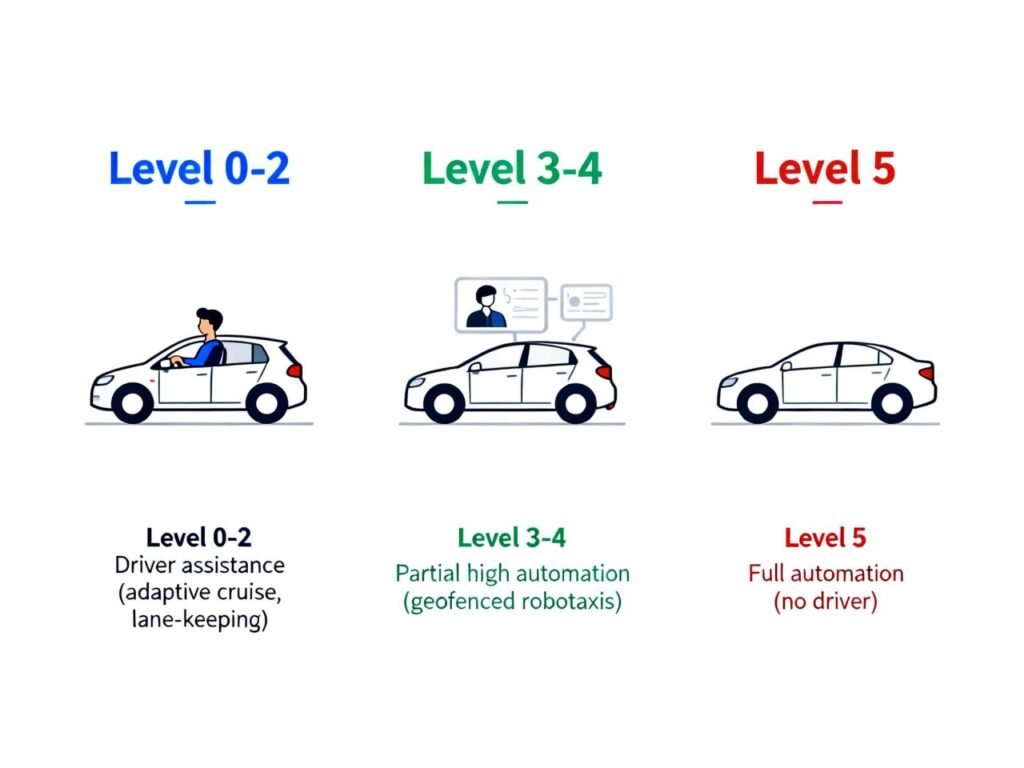 At these levels vehicles can handle more complex driving tasks. A Level 3 system can manage highway driving but may request human intervention when conditions change. Level 4 vehicles can operate independently within specific geographic zones such as robotaxi services operating in selected cities.
